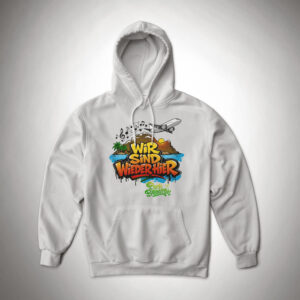 Unisex Hoodie mit dem Blocki Motiv ‚wir sind wieder hier‘ Brustdruck. Der Hoodie besteht aus 80% Baumwolle sowie 20% recyceltem Polyester.