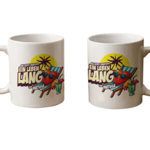 Die Tasse wird mit einem Motiv auf beiden Seiten, also vorne und hinten, bedruckt.