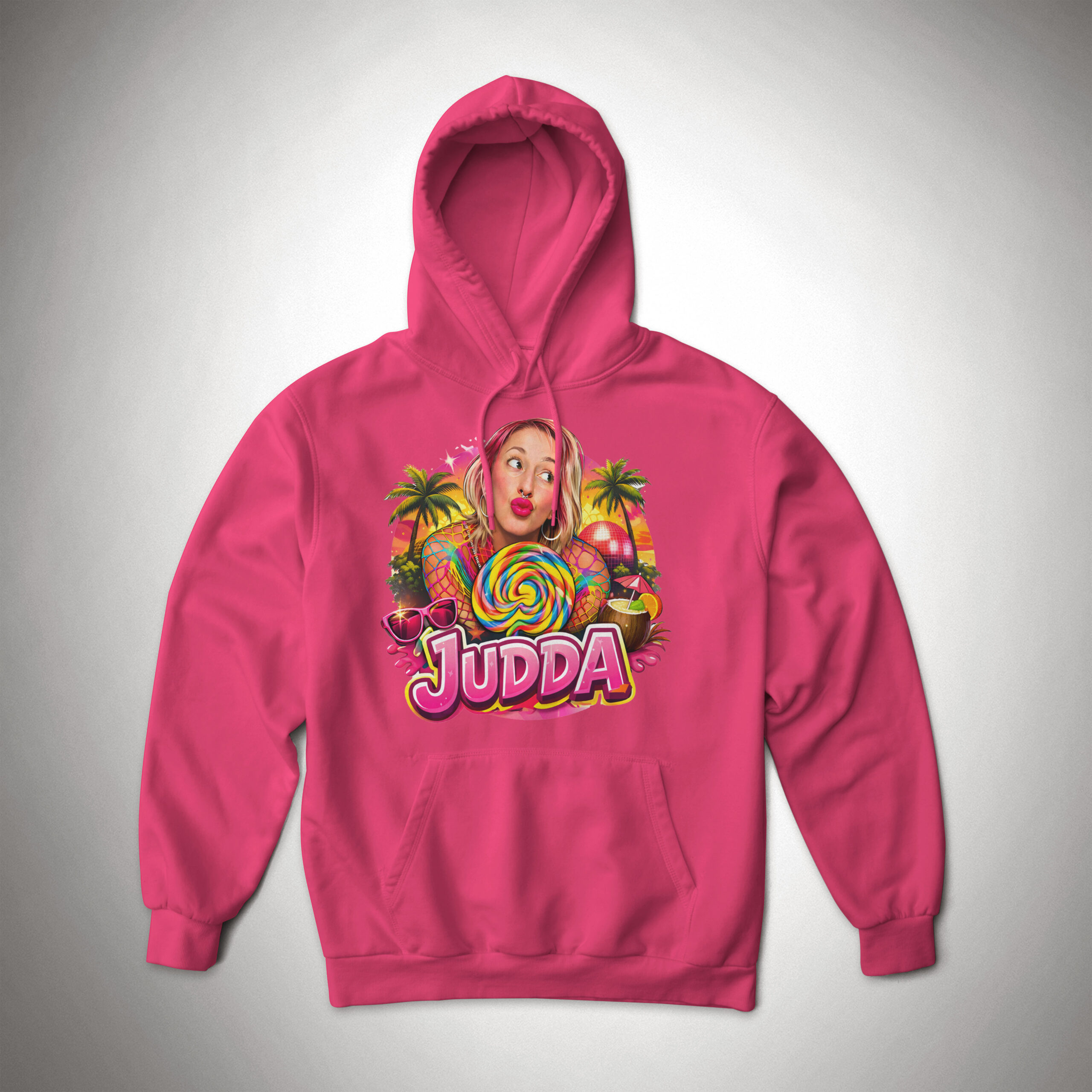 Dieser Hoodie wird mit dem neuen Judda Motiv bedruckt und ist für Frauen sowie für Männer. Das Motiv hat eine Breite von ca. 33 cm und befindet sich im Brustbereich.